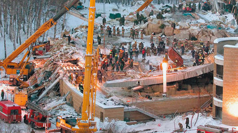 De nuevo un 14 de febrero como protagonista. En Moscú existe un parque acuático —con más de 20.000 metros cuadrados— llamado Transvaal Park, en donde en el año 2.004 se celebró una fiesta multitudinaria que, a partir de las 20:00 hrs. de ese día, acabó convertida en un infierno al ceder las cúpulas por el peso de la nieve acumulada. Fallecieron 38 personas, algunas por hipotermia (-20º) y otras por las heridas causadas por los cortes de los cristales procedentes del techo y de los laterales del parque. Un dato curioso es que hasta entonces este centro presumía de ser el más seguro del mundo.